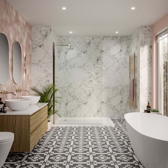 The Pure collection includes our range of matt wall panels for bathrooms. Discover beautiful neutral tones or stunning marble and stone decors and create a bathroom that suits your taste.