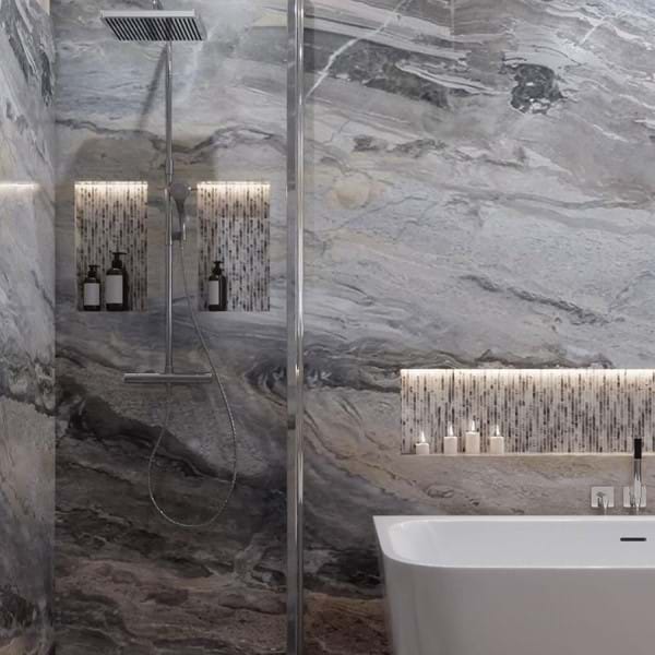 The Pure collection includes our range of matt wall panels for bathrooms. Discover beautiful neutral tones or stunning marble and stone decors and create a bathroom that suits your taste.