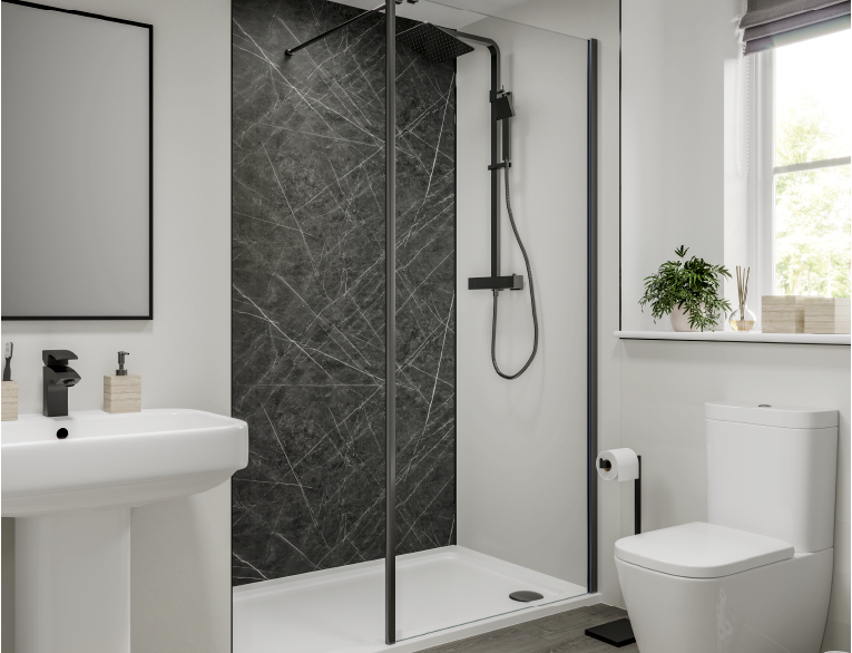 Unsere schwarzen Wandpaneele verleihen jedem Badezimmerdesign mehr Tiefe und sorgen für einen dramatischen und doch raffinierten Look. Die schwarzen Paneele sind sowohl in Granit-, Marmor- oder Schieferoptik erhältlich und eröffnen Ihnen die Möglichkeit, Ihr Badezimmer mit Naturmaterialien auszustatten, ohne dass dabei der Reinigungsaufwand anfällt, den die entsprechenden echten Materialien mit sich bringen würden.