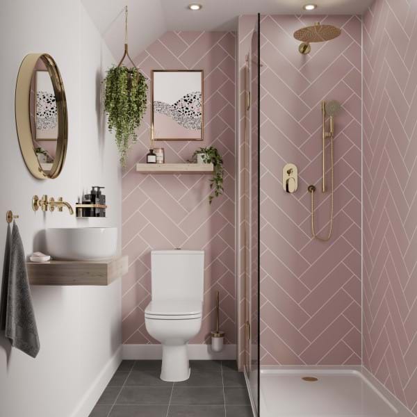 Unser Antique Rose-Wandpaneel mit Fischgräteffekt garantiert Ihnen maximale Flexibilität: Entscheiden Sie selbst, ob Sie die in Frage kommende Wandfläche vollständige damit verkleiden oder sich darauf beschränken, die Paneele nur halbhoch zu verlegen. Egal, welche Variante Sie wählen – unsere Antique Rose-Paneele sehen einfach immer umwerfend gut aus! Kombinieren Sie Antique Rose mit unserem Alpine White-Fliesenpaneel und goldfarbenen oder messinggebürsteten Accessoires und schaffen Sie sich so Ihre ganz persönliche Badezimmer-Wohlfühloase.