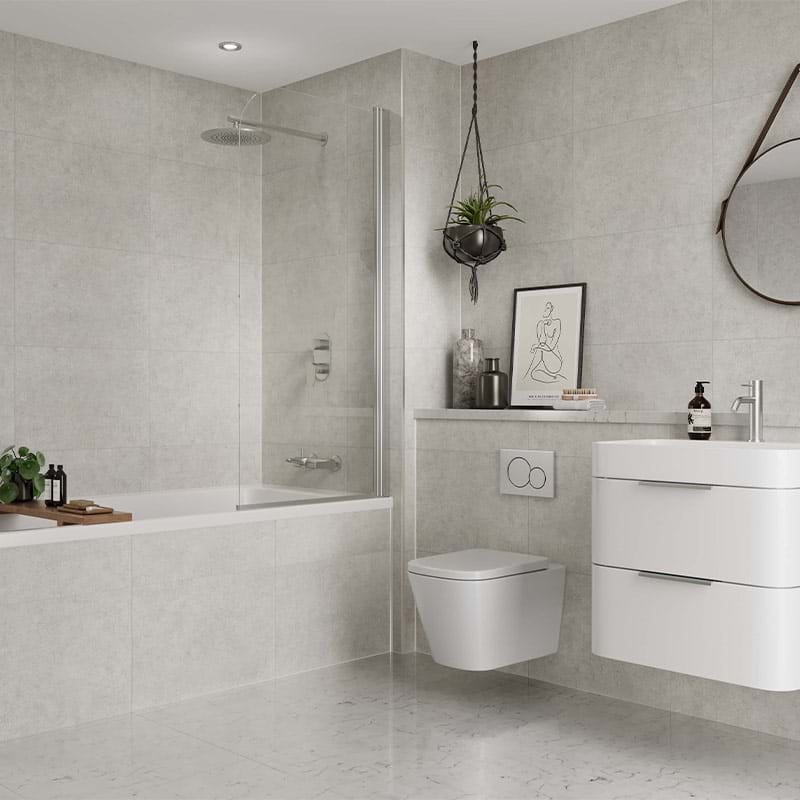 Entdecken Sie die Exklusive Kollektion von Multipanel. Von atemberaubenden Stein- und Marmoreffekten bis hin zu Fliesenoptik – renovieren Sie Ihr Badezimmer mit Stil.