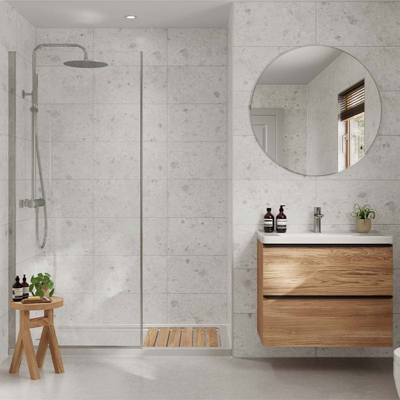 Entdecken Sie die Exklusive Kollektion von Multipanel. Von atemberaubenden Stein- und Marmoreffekten bis hin zu Fliesenoptik – renovieren Sie Ihr Badezimmer mit Stil.